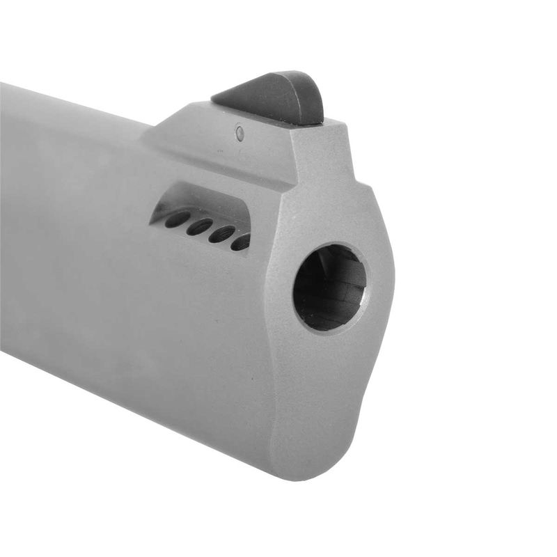 A ação do revolver é Single/Double Action (SA/DA), o que significa que o usuário pode escolher entre puxar o gatilho em ação simples para disparos mais precisos ou em ação dupla para disparos mais rápidos. O cilindro é do tipo Swing-Out, com capacidade para 7 cartuchos, e é feito de aço carbono, assim como o cano.
