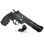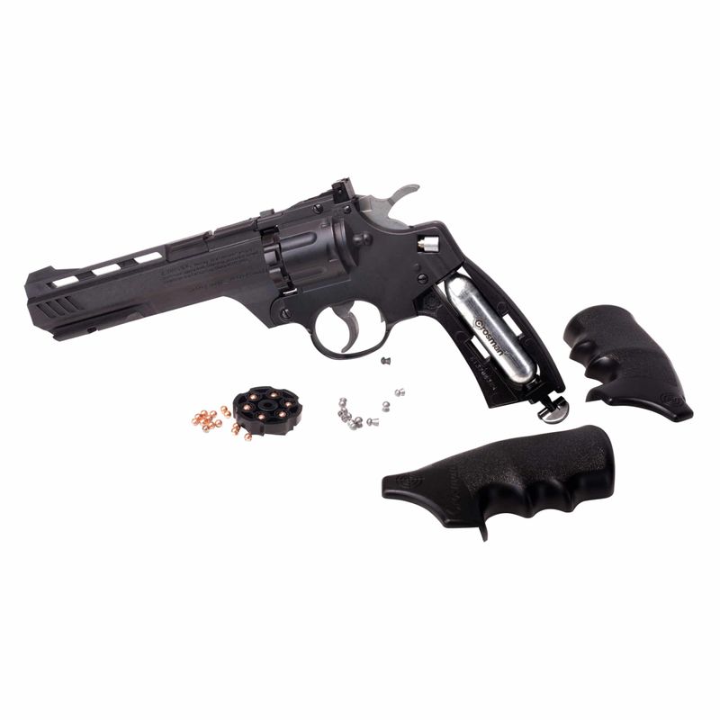 O Crosman Vigilante, alimentado por CO2, oferece disparo em ação simples e dupla e é perfeito para tiro esportivo.