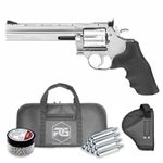 Este Revólver Airgun Dan Wesson 715 6" Cromado 4,5mm + Coldre dispara no modo Repetição com velocidade de 426fps - 130m/s e energia de 3 Joules Ver mais