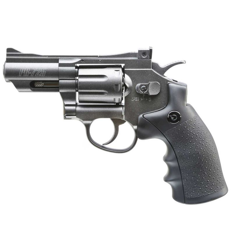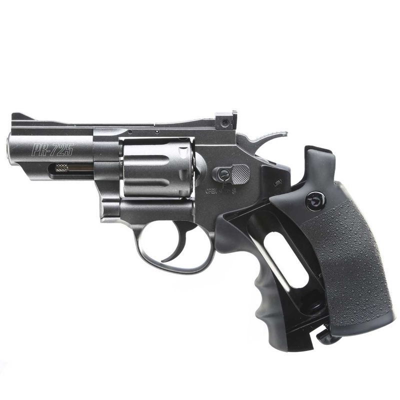 O revólver PR-725 é uma arma semi-automática de CO2, compacta, derivada da versão de cano longo Gamo PR-776.