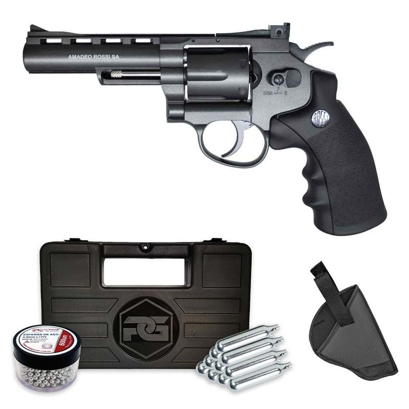Este Revólver Airgun Rossi M701 Full Metal Co2 4,5mm + Coldre dispara no modo Repetição com velocidade de 370fps - 113m/s e energia de 2,3 Joules Ver mais