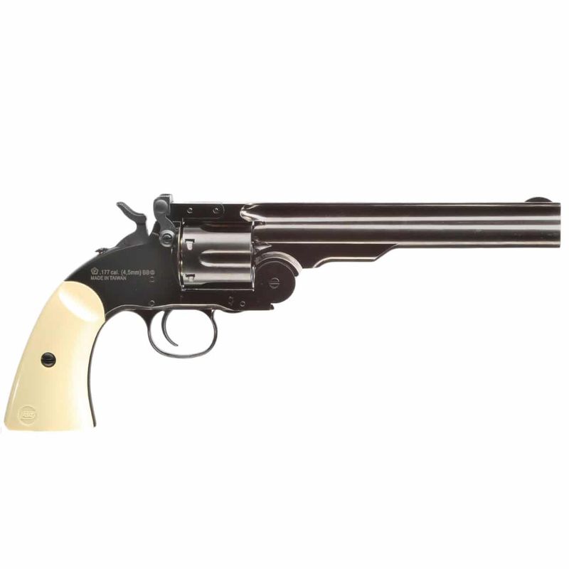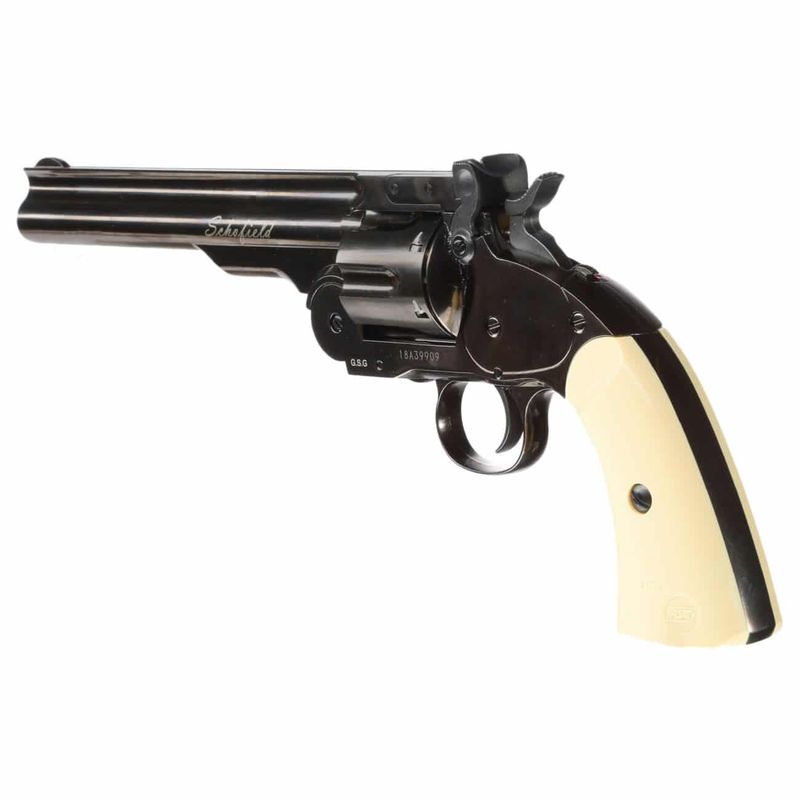 O revólver Schofield Plated Steel 1877 CO2 ASG é um revólver airgun calibre 4,5mm e é particularmente popular entre os colecionadores: o protótipo afiado, o revólver Smith & Wesson N. 3, foi o primeiro modelo de cano a ser dobrada e foi introduzida em 1870.
