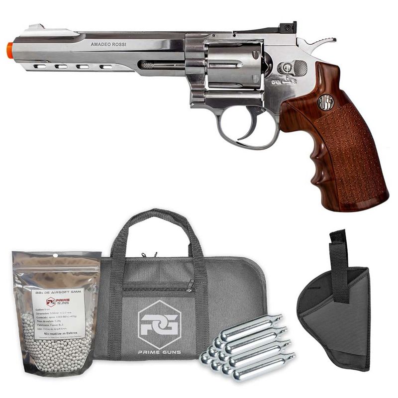 Este Revólver Airsoft Rossi w702s 6mm Co2 Cromado + Coldre dispara no modo Repetição com velocidade de 460fps - 140m/s e energia de 2 Joules Ver mais