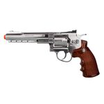 Assim como o revólver W702 Airgun, esse modelo oferece um acabamento prateado/cromado de alta qualidade e é fabricado pela Wingun, mesma fábrica que produz os lendários revólveres Dan Wesson, Rossi e Crosman.