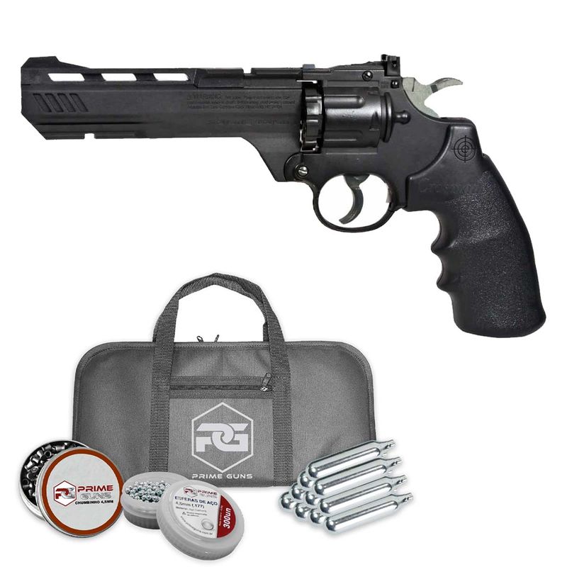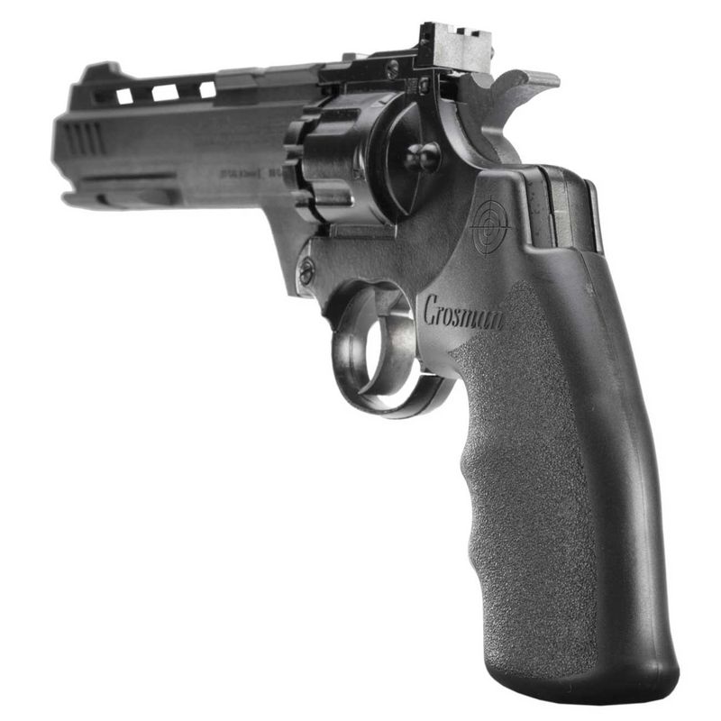 Um modelo de revólver relativamente leve é o revólver Crosmann CO2 Vigilante em um design simples, mas visualmente interessante, com interrupções no cano. É adequado para disparar seis bolas redondas BB de aço 4.5, mas também chumbinhos. Os tambores de 10 ou 6 tiros para BBs são intercambiáveis.