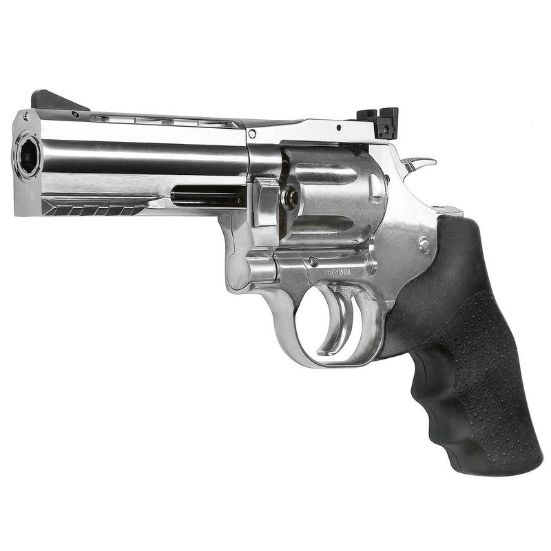 Com um peso aproximado de 1200g, o revólver é pesado na mão e transmite uma sensação realista de tiro. É operado com uma cápsula de CO2 de 12g e dispara diabolos de calibre 4,5mm.
