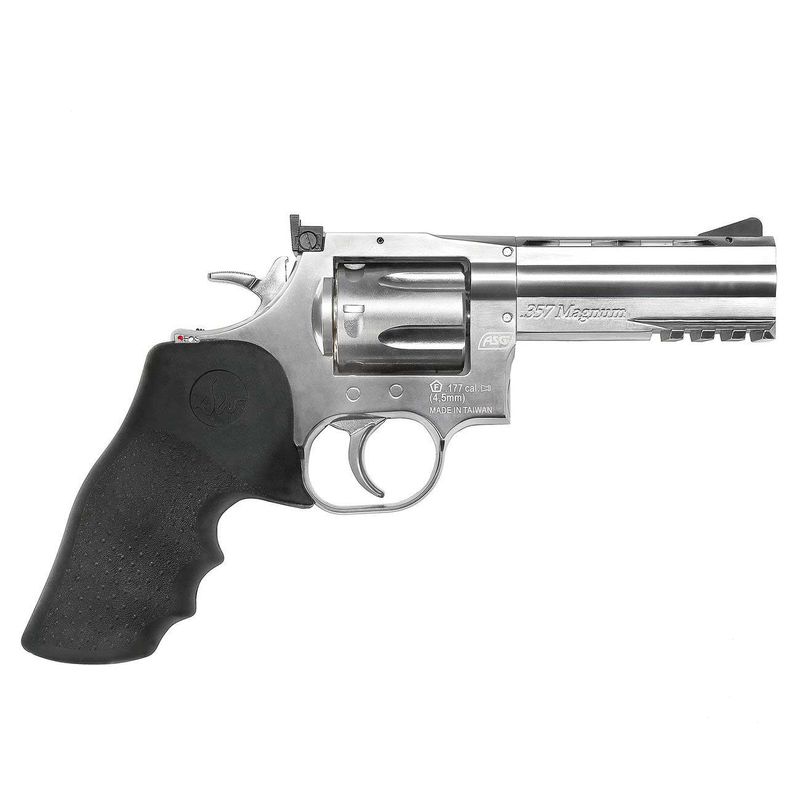 Com um peso aproximado de 1200g, o revólver é pesado na mão e transmite uma sensação realista de tiro. É operado com uma cápsula de CO2 de 12g e dispara diabolos de calibre 4,5mm.
