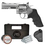 A Verdade é que ele possui todas as características como um revólver real, mas nesse caso, com propulsão de Co2 e que disparas chumbinhos 4,5mm (.177)
