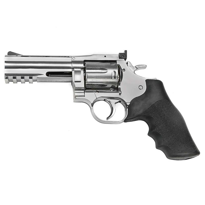 Com um peso aproximado de 1200g, o revólver é pesado na mão e transmite uma sensação realista de tiro. É operado com uma cápsula de CO2 de 12g e dispara diabolos de calibre 4,5mm.