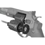 Este revólver Gamo acompanha 2 tambores de 8 tiros cada, para uso mais rápido e prático, permitindo disparos em modo Single e Double Action.