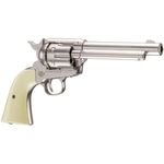 Este Revólver Colt Single Action Cromado SAA Co2 4,5mm dispara no modo Repetição com velocidade de 420fps - 128m/s e energia de 3 Joules Ver mais