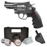 O revólver CO2 SNR-357 da Crosman vem no calibre 4,5mm e pode ser carregado tanto com BBs de aço quanto com chumbinhos (pellets).