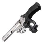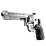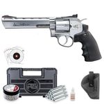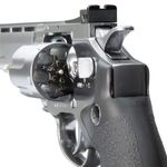 Este Revólver Dan Wesson 6" Cromado Co2 4,5mm Full Metal Kit dispara no modo Repetição com velocidade de 420fps - 128m/s e energia de 2,5 Joules Ver mais