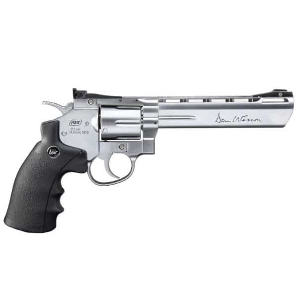 Antes da empresa dinamarquesa ASG (Action Sport Games) criar o revólver Dan Wesson em 2008, a Crosman e a Gamo já produziam alguns modelos de revólver CO2, geralmente fabricados em polímero ABS de alta qualidade.