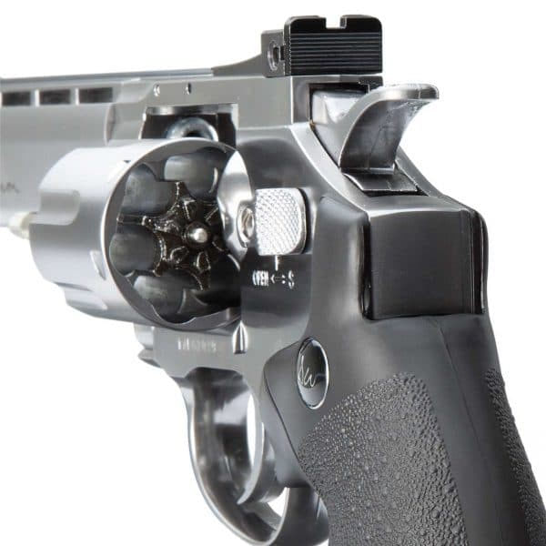 É impossível pensar em um revólver airgun e não lembrar logo do Revólver Dan Wesson 6" Cromado da ASG.