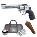 O revólver Dan Wesson possui um cano de 6 polegadas, acabamento cromado, alça de mira regulável, com opção de instalação de trilho superior de 22mm para Red Dot, e acompanha um Jet Loader com 6 cápsulas de metal (inclusas).