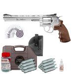 Este Revólver Dan Wesson 8" Cromado Co2 4,5mm Metal Super Kit dispara no modo Repetição com velocidade de 440fps - 134m/s e energia de 3,3 Joules Ver mais