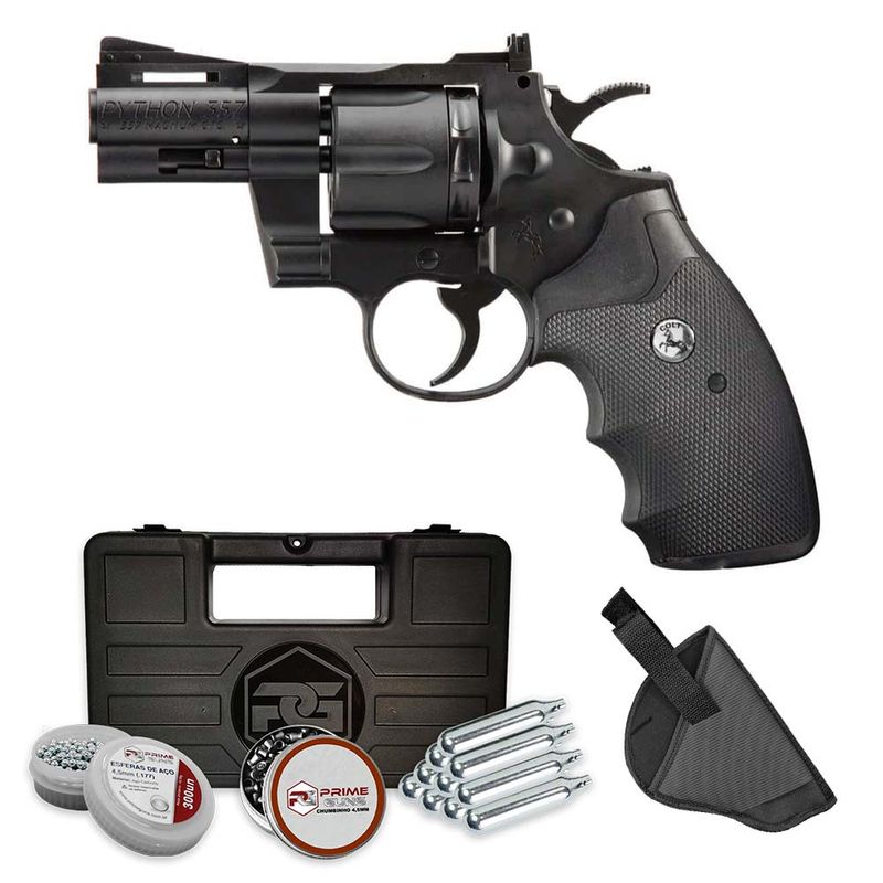 Este Revólver de Chumbinho Colt Python 2,5" Umarex Co2 + Coldre dispara no modo Repetição com velocidade de 328fps - 100m/s e energia de 3 Joules Ver mais