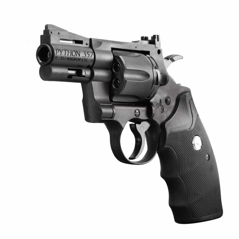 O Revólver Colt Python .357 CO2, no calibre 4,5 mm, oferece operação prática e desempenho consistente. Fabricado com corpo em polímero ABS resistente, possui componentes internos e peças móveis em metal, como cão, cano interno e gatilho, conferindo robustez e excelente acabamento.