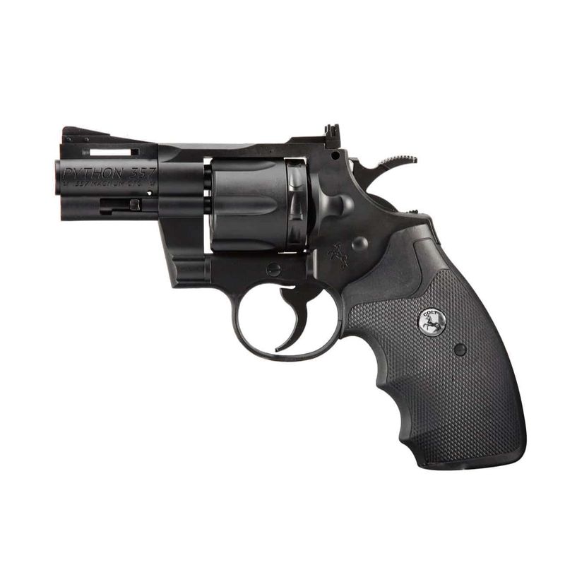 O Revólver Colt Python .357 CO2, no calibre 4,5 mm, oferece operação prática e desempenho consistente. Fabricado com corpo em polímero ABS resistente, possui componentes internos e peças móveis em metal, como cão, cano interno e gatilho, conferindo robustez e excelente acabamento.