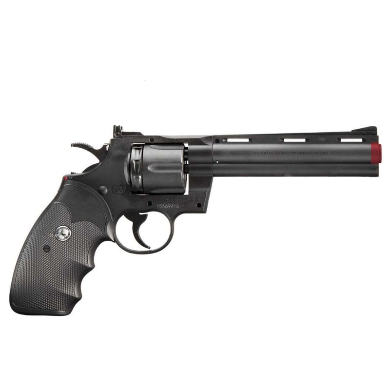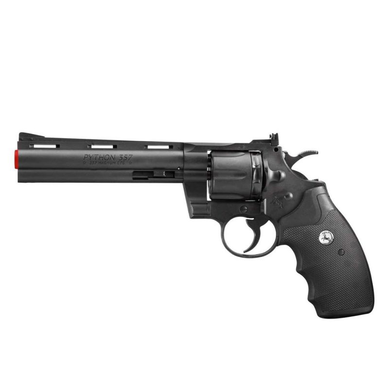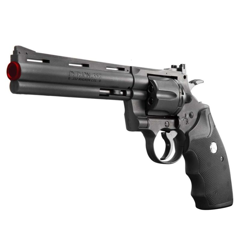 O Colt Python 6" 4,5mm CO2 destaca-se pelo seu trilho ventilado e pela carcaça da haste ejetora alinhada com o cano, conferindo a estética inconfundível que tornou este modelo um ícone entre os revólveres modernos.
