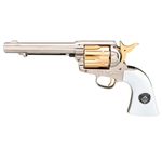 O lendário Peacemaker revive em grande estilo com o Colt SAA Smoke Wagon, a versão mais luxuosa já produzida do icônico Single Action Army (SAA). A Umarex reproduziu fielmente cada detalhe do clássico de 1873 — o revólver que consagrou o Velho Oeste — com acabamento Silver & Gold, gravuras refinadas e visual inspirado nos modelos históricos mais cobiçados por colecionadores.