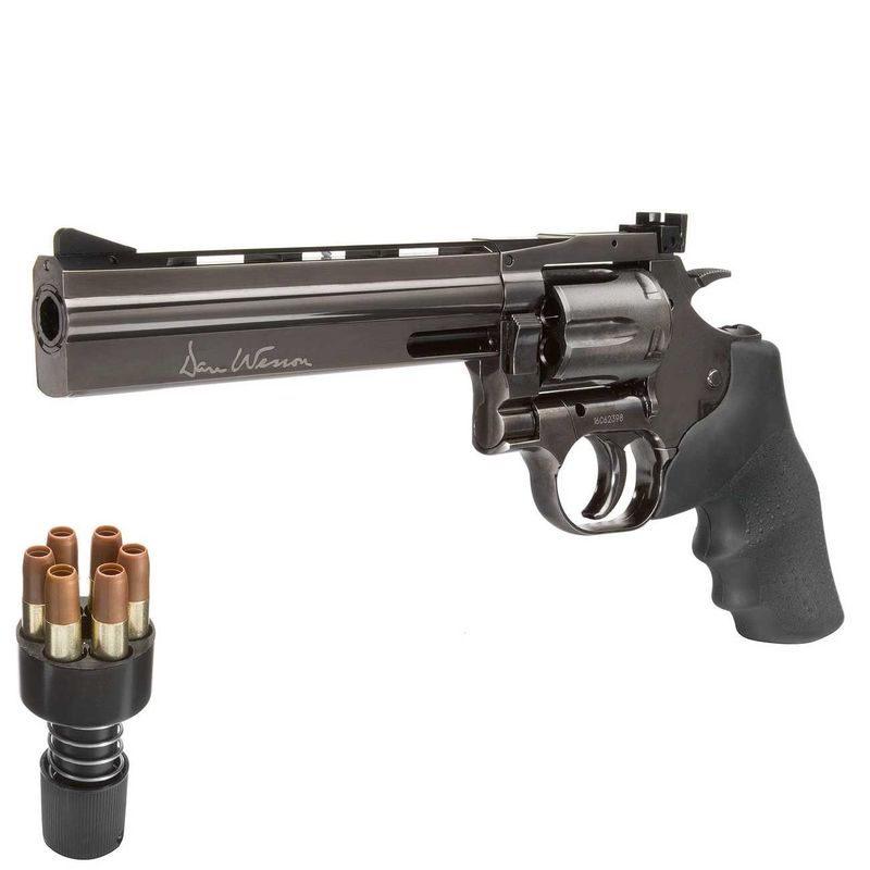 O revólver de CO2 de Dan Wesson é feito de metal sólido e tem um número de série individual. Um gatilho de dupla ação e uma mira ajustável também falam pelo revólver de pressão de ar de alta qualidade. Ele vem com um carregador de velocidade e 6 cápsulas e pode encontrarcartuchos adicionais clicando aqui.