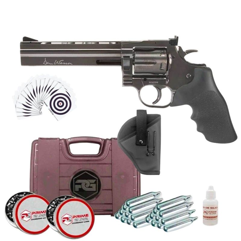 A Verdade é que ele possui todas as características como um revólver real, mas nesse caso, com propulsão de Co2 e que disparas chumbinhos 4,5mm (.177)