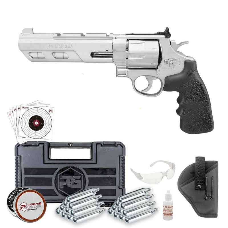 Este Revólver de Chumbinho Smith Wesson 629 6" Competitor 4.5mm .177 Co2 Super Kit dispara no modo Repetição com velocidade de 338fps - 103m/s e energia de 3 Joules Ver mais