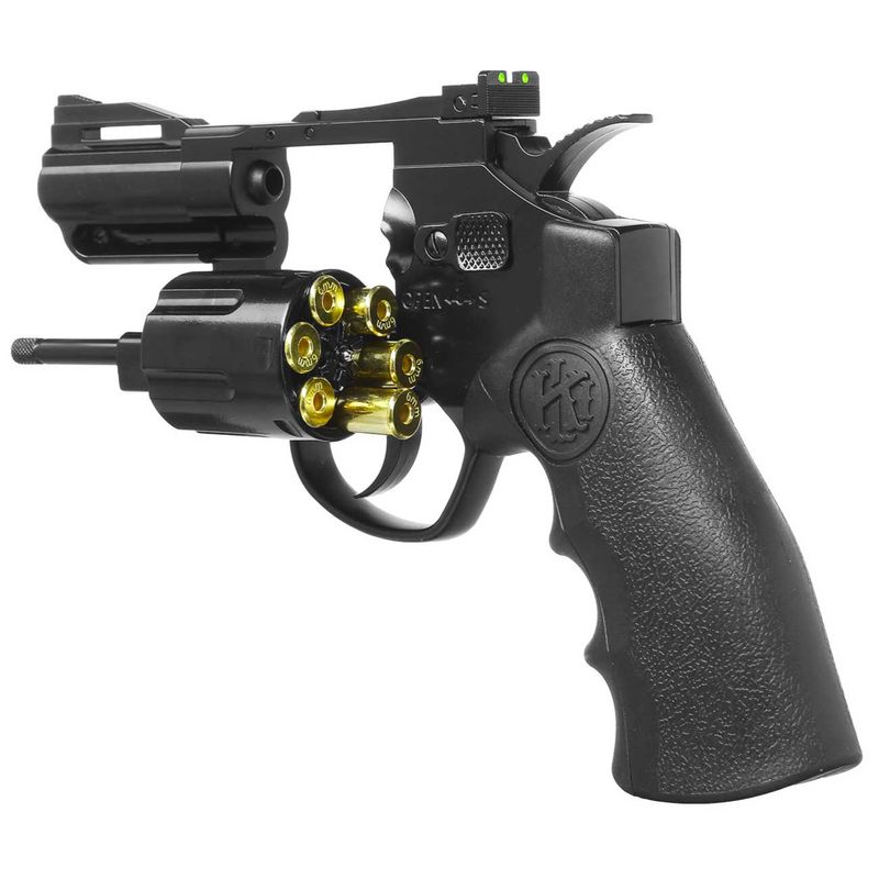 Este Revólver de Co2 KLI Titan 2.5 BK Preto QGK Full Metal 6mm dispara no modo Repetição com velocidade de 350fps - 107m/s e energia de 1,6 Joules Ver mais