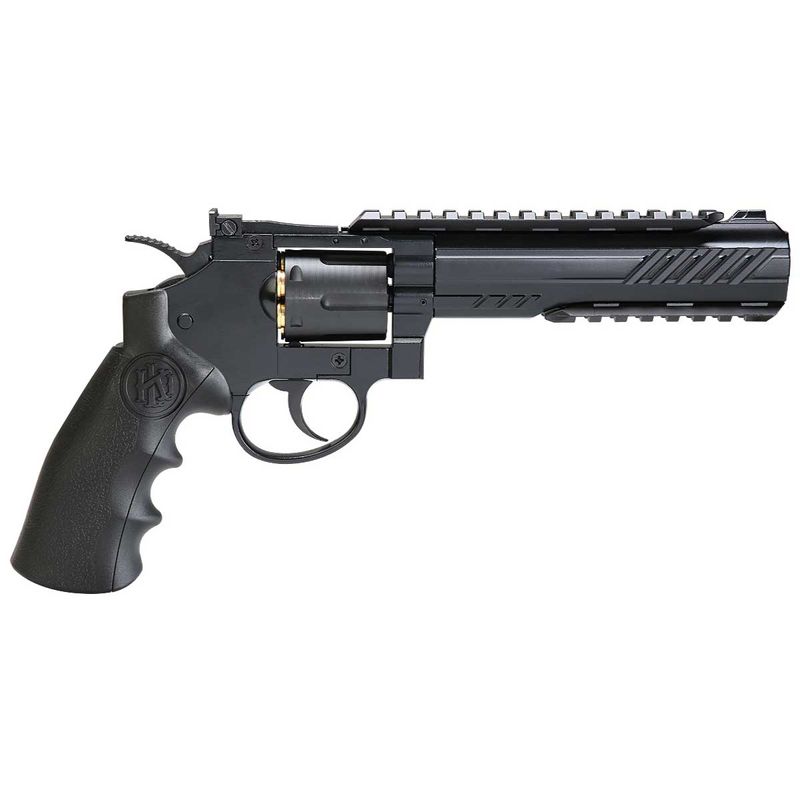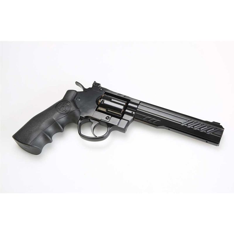 Este Revólver de Co2 KLI Titan BK 6" Preto QGK Full Metal 6mm dispara no modo Repetição com velocidade de 430fps - 131m/s e energia de 2,4 Joules Ver mais