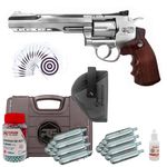 Este Revólver de Pressão Rossi W702s Cromado 6" Co2 4,5mm Super Kit dispara no modo Repetição com velocidade de 420fps - 128m/s e energia de 3,4 Joules Ver mais