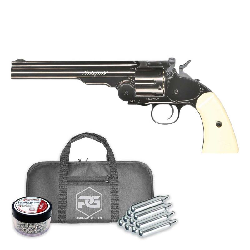 Uma peça indispensável para os amantes de armas clássicas e revólveres do Velho Oeste, o Revólver de Chumbinho Schofield Plated Steel é um modelo fabricado pela empresa dinamarquesa ASG, construído todo em metal e licenciada pela marca Schofield.