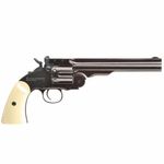 A réplica detalhada do CO2 da ASG é feita toda em metal, cuidadosamente fabricada e fornecida com as marcações Schofield originais. O acabamento "Envelhecido" - em conjunto com empunhaduras que imitam muito bem marfim - cria uma aparência particularmente autêntica e clássica.