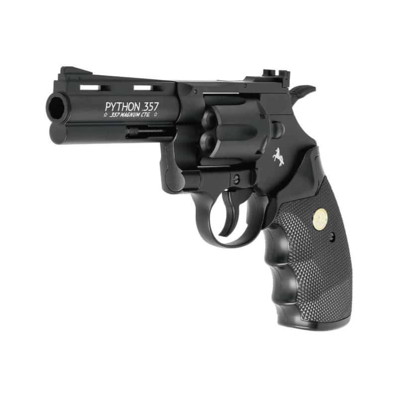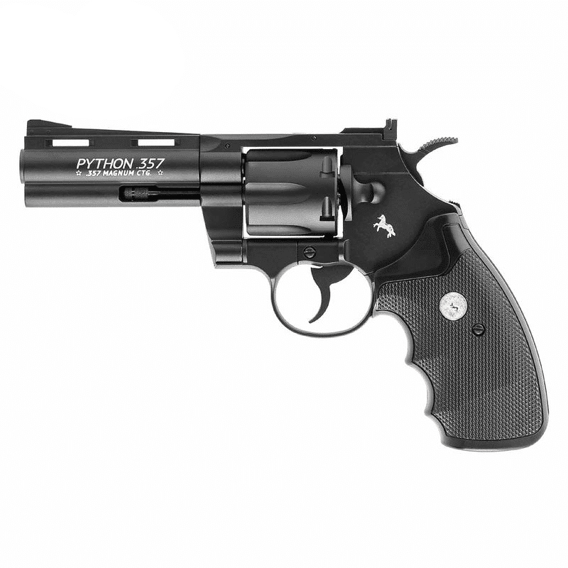 O Colt Python 357 Black, nesta versão Airgun, é fabricado pela Umarex sob licença oficial da Colt, com marcações a laser. Seu corpo, tambor, cano e estrutura interna são totalmente em metal. No cabo é inserido o cilindro de Co2 de 12g. O disparo pode ser realizado em ação simples ou dupla.
