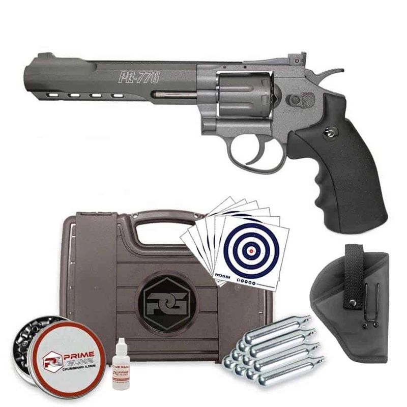 O revólver Gamo PR-776 é um revólver Airgun de chumbinho calibre 4,5mm (.177), que utiliza CO2 12g como propulsão, com capacidade para 8 tiros (acompanha 2 clips - magazines) com uma velocidade média de 400fps.