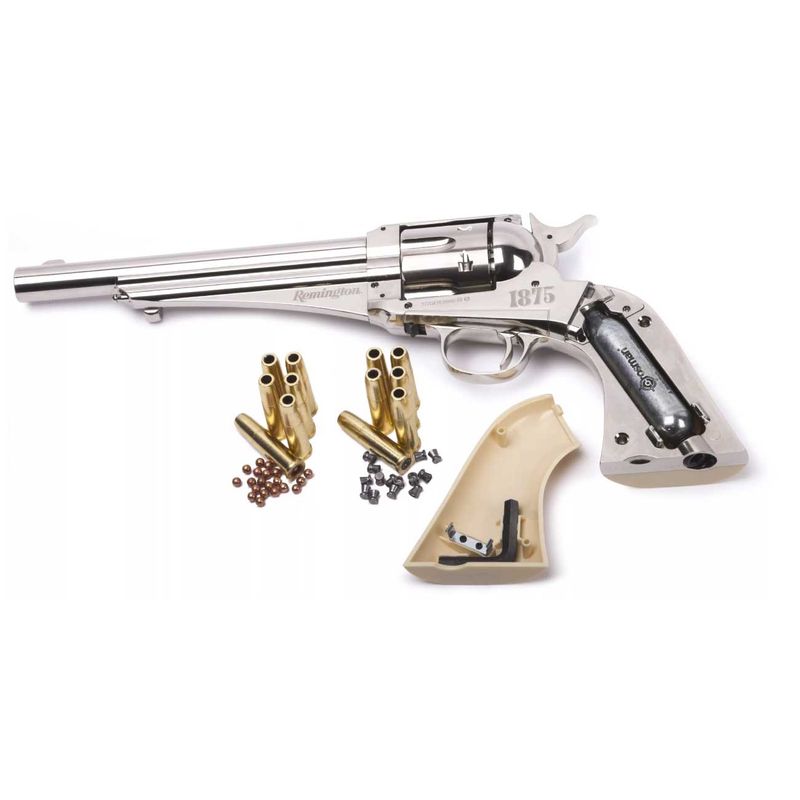 O Remington 1875 CO2 Revolver é uma réplica de arma de pressão CO2, calibre 4,5mm.