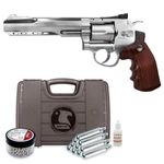 Este Revólver Rossi W702s Cromado 6" Co2 4,5mm + Maleta de Transporte dispara no modo Repetição com velocidade de 420fps - 128m/s e energia de 3,4 Joules Ver mais