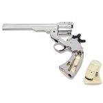Este Revólver Schofield Silver Chumbinho 6" Airgun Co2 Metal Kit dispara no modo Repetição com velocidade de 430fps - 131m/s e energia de 4 Joules Ver mais