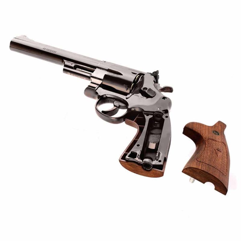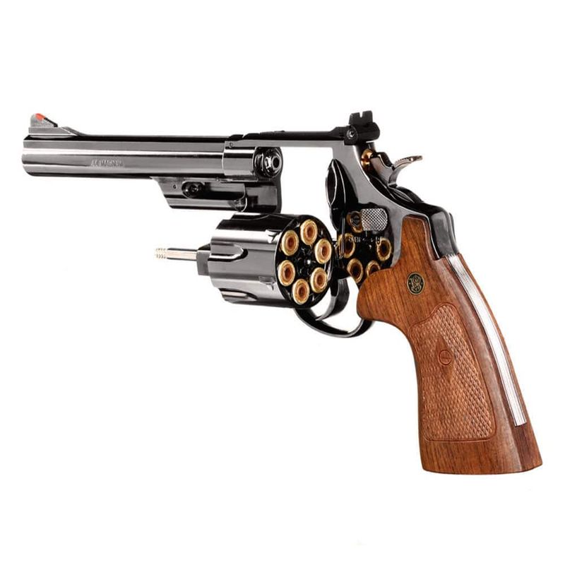 Esse incrível revólver Smith Wesson M29 Magnum dispara esferas de aço calibre 4,5mm (.177) a uma ótima velocidade de até 400fps (122m/s)