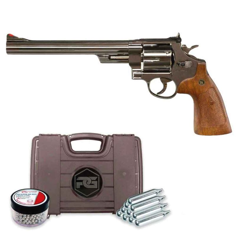Esse incrível revólver Smith Wesson M29 8" Magnum dispara esferas de aço calibre 4,5mm (.177) a uma ótima velocidade de até 443fps (135m/s)