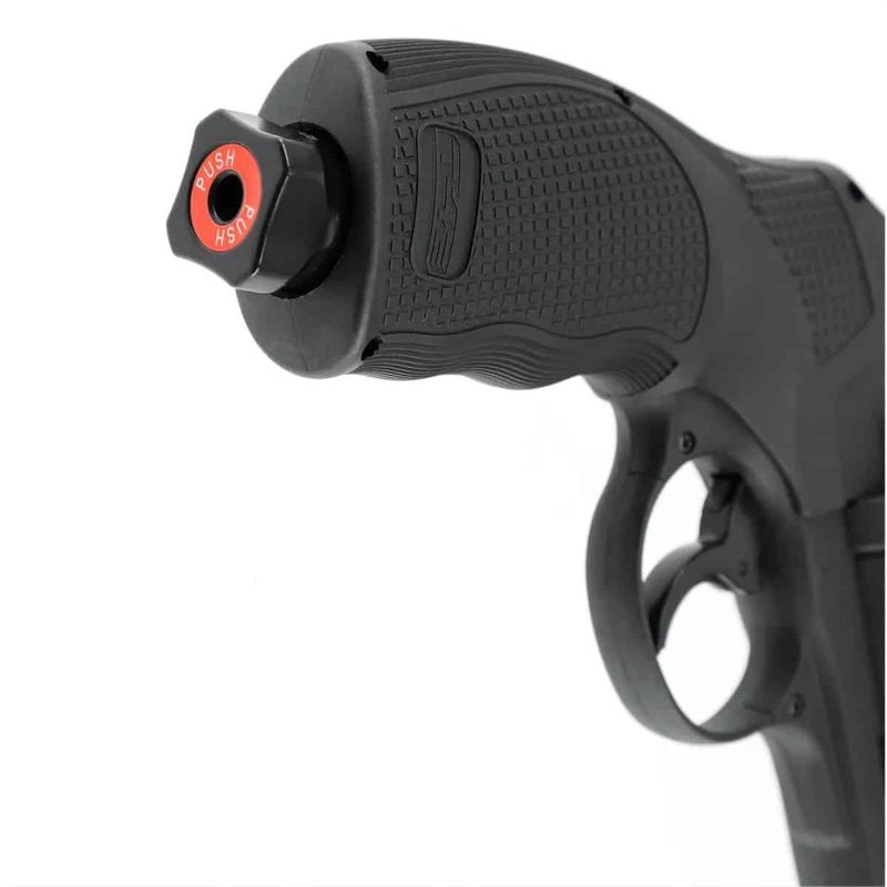 O revólver T4E .50 da Umarex é uma arma leve, baseada no modelo Tronado (airgun) e confeccionada toda em polímero ABS de alta resistência.