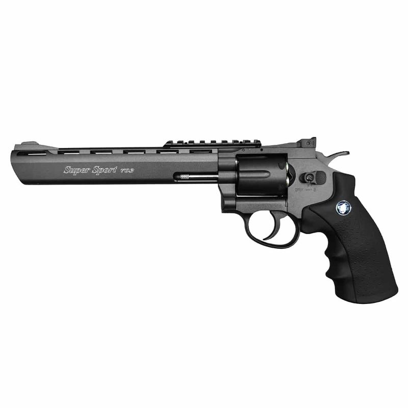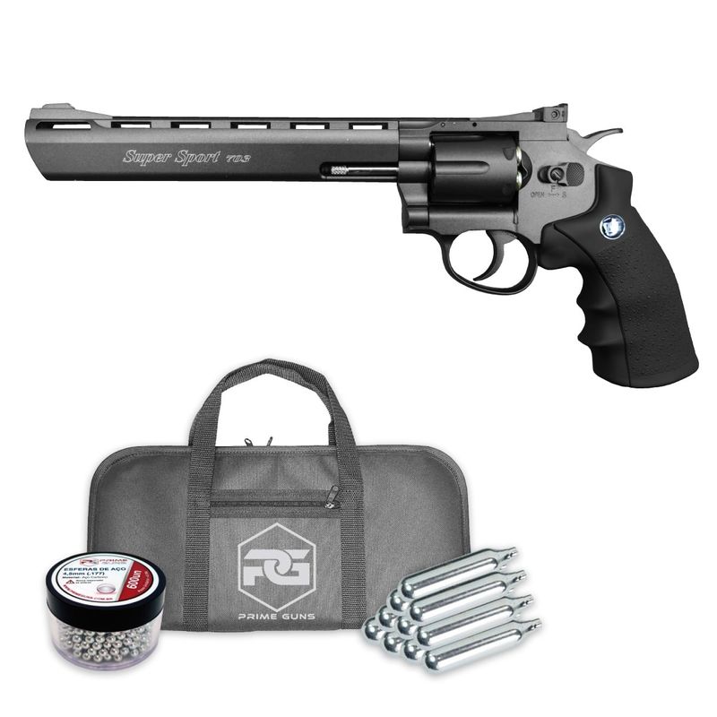 O revólver de co2 possui todas as travas funcionais e funciona exatamente da mesma forma que um revólver original, com o tambor rotativo que abre para esquerda, cão móvel na função double e single action, empunhadura emborrachada com compartimento do Co2 12g, cano de alma lisa e dispara as esferas de aço calibre 4,5mm (.177) a uma velocidade superior a420fps, com um rendimento surpreendente de mais de 60 tiros bons com um cilindro de co2.