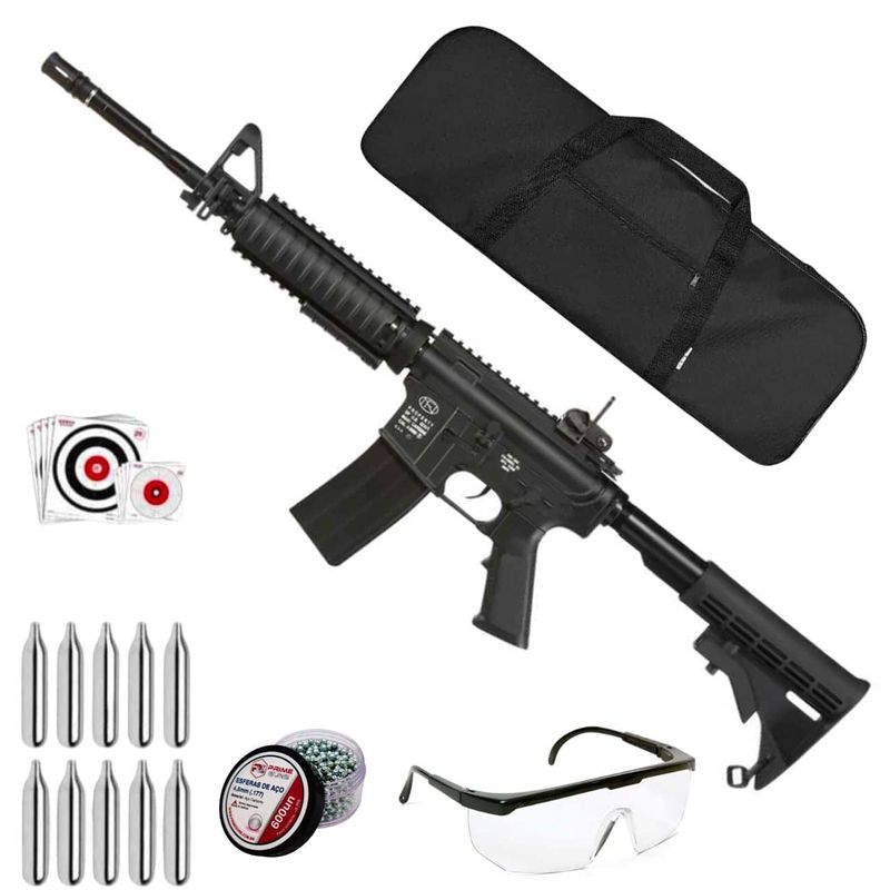 + Capa com Forro + 600 Esferas de Aço + 10 Co2 12g + Óculos de Segurança + Alvos
