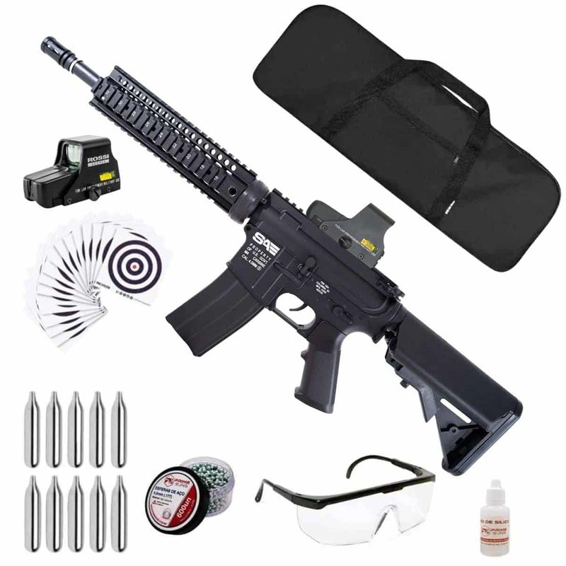 + Capa com Forro + 600 Esferas de Aço + 10 Co2 12g + Óculos de Segurança + Alvos + Red Dot 551