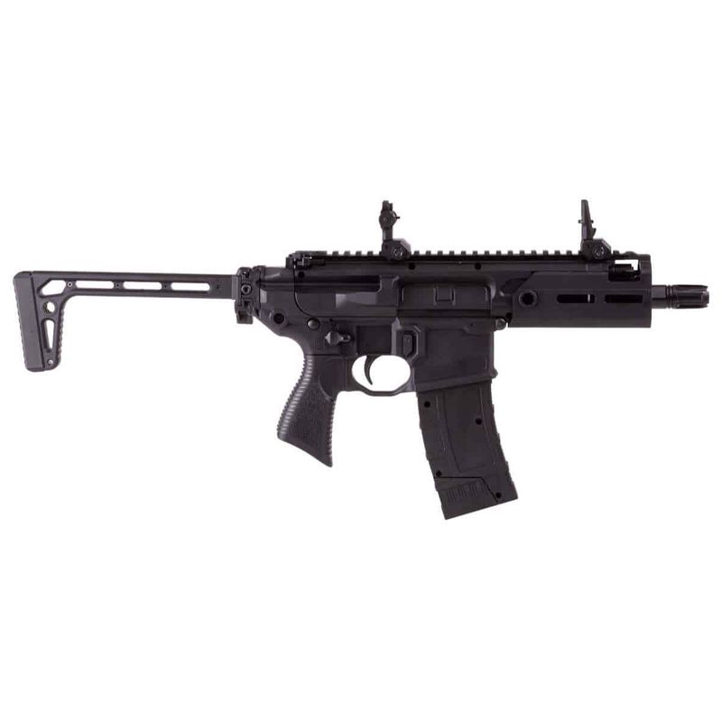 A Sig MCX Rattler Airgun possui capacidade para 30 esferas de aço 4,5mm e um rendimento total de 60 disparos por cilindro.