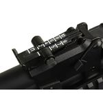 O Rifle CM040L AEG possui empunhadura telescópica com comprimento ajustável. No lugar do handguard padrão, foi feita uma conversão completa com trilhos de montagem RIS de 22 mm, permitindo que o rifle possa ser equipado com acessórios adicionais. Além disso, a réplica tem uma alavanca de recarga de dois lados modificada e um punho de pistola SAW ergonômico. No lado direito, há um seletor de modo de disparo característico para réplicas Fuzil AK 47 Airsoft.