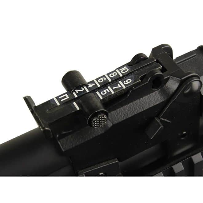A réplica é alimentada por um Gearbox V3 de alta confiabilidade, com uma estrutura engenhosamente reforçada. No interior encontramos entre outros materiais, mancais de aço de 7mm para reforços-guia do pistão. A eficiência do equipamento é garantida por um cano interno de 370mm e uma câmara Hop-up de metal selado.