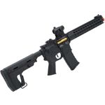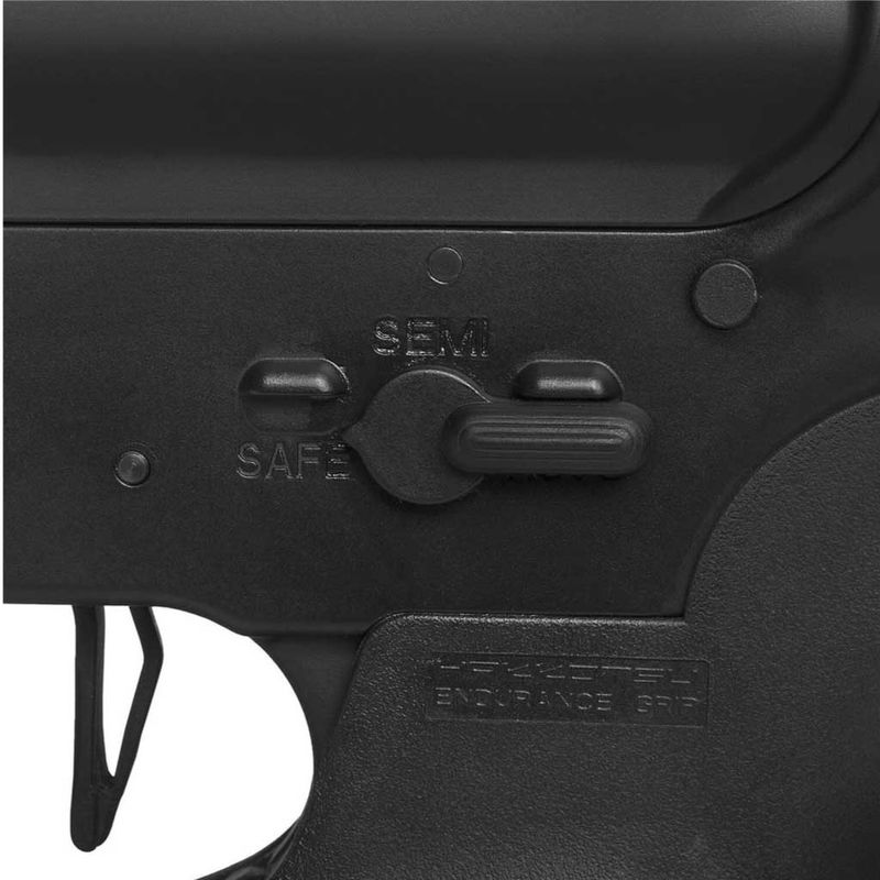 O drive de disparo funciona de forma confiável através da caixa de engrenagens APS Silver Edge com acionamento elétrico, que vem com uma caixa de metal especialmente usinada. Outra característica interessante é a função Blowback eletromecânica, que movimenta o slide lateral a cada disparo, simulando o funcionamento real do fuzil.