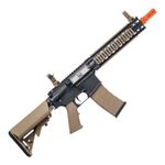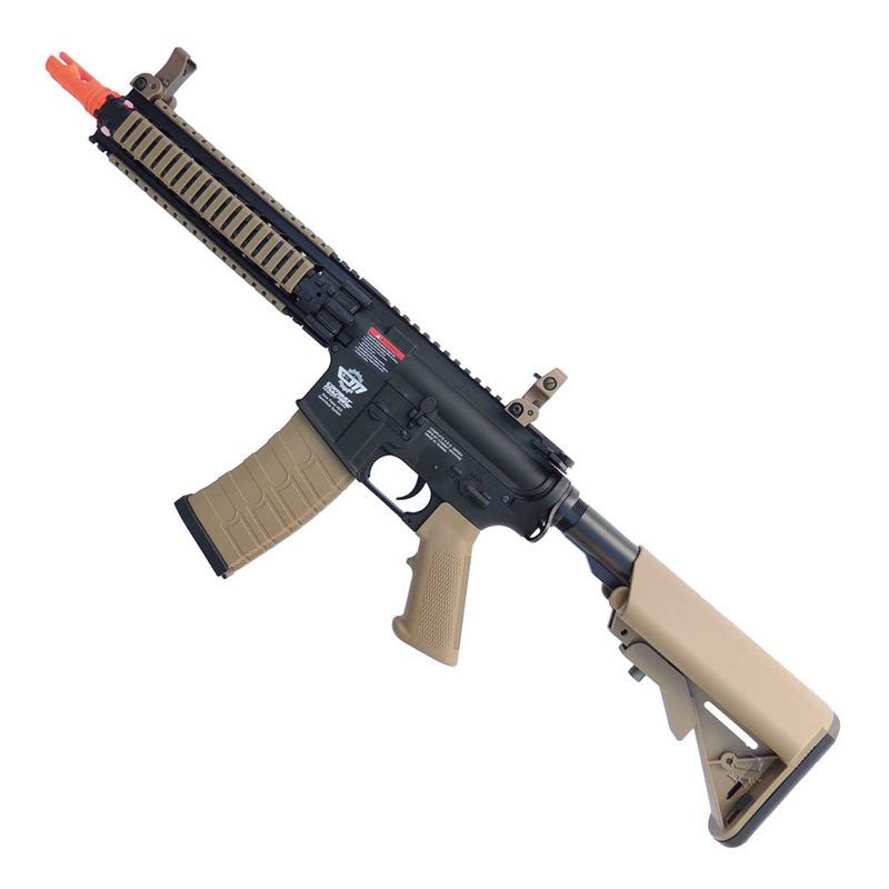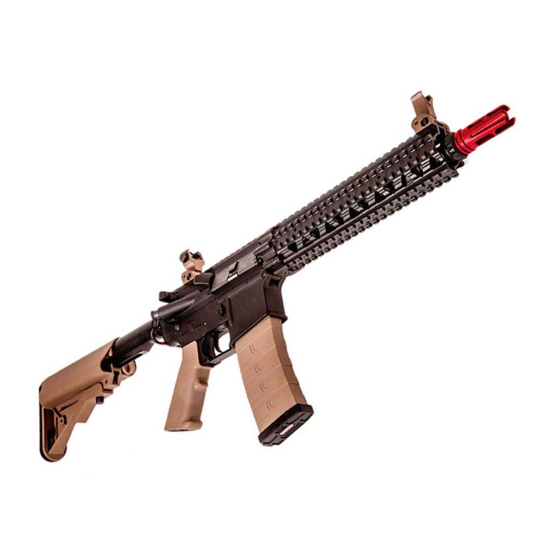 O Rifle Airsoft CM18 Mod 1 G&G M4A1 RIS Black/Tan 6mm AEG dispara no modo Semi e Full Automática com velocidade de 350fps - 106m/s e energia de 1,4 Joules Ver mais